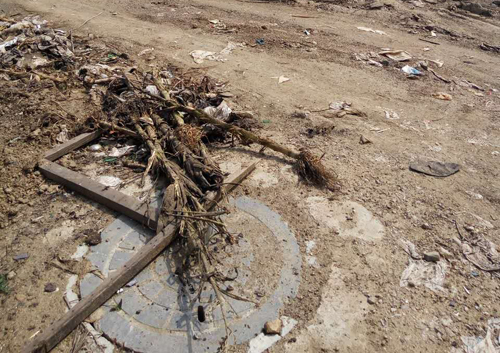 一位村民指著西面被垃圾包圍的一個鐵皮焊接成的小門說:“這就是我們?nèi)迦顺运乃?,水從井里抽出,通過管道送往距此地約300多米的蓄水池,然后在供給各家各戶,這是我們?nèi)逦ㄒ坏某运??!?/p>