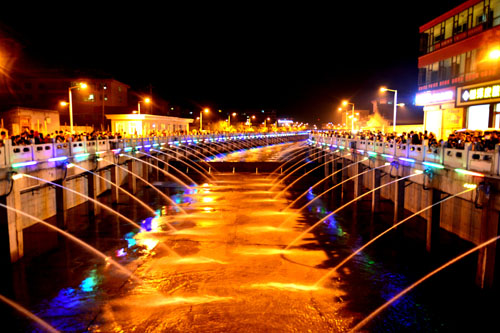 10月1日,國(guó)慶節(jié),代縣縣城關(guān)溝河景觀工程正式竣工蓄水。河道中,兩道鋼閘壩內(nèi),清清的河水碧波蕩漾,河道兩岸是兩條6米寬的景觀大道。道路內(nèi)側(cè),路燈成行,綠樹成蔭,風(fēng)光如畫。伴隨著優(yōu)美的樂曲,河道兩側(cè)的音樂噴泉噴珠吐玉,不斷變化著造型,在金色的陽光下不時(shí)閃現(xiàn)出道道彩虹。到了夜間,音樂噴泉在明亮的燈光映襯下,更是五彩繽紛,赤橙黃綠青藍(lán)紫,猶如彩練當(dāng)空舞。成為歷史文化名城一道亮麗的風(fēng)景。
