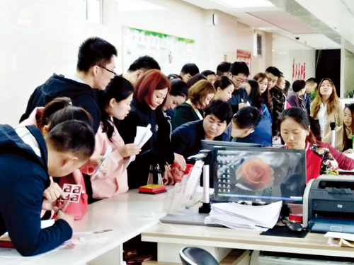 圖為現(xiàn)場扎堆領(lǐng)證的準(zhǔn)新人 張林泉 攝影報道