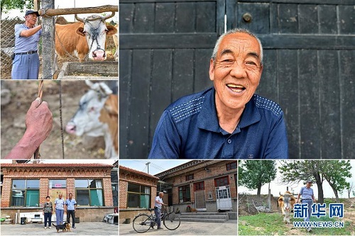 尚彩良,男,1949年出生,山西省長治市潞城區(qū)比干嶺村人,家傳的養(yǎng)殖技術(shù)讓他從小不愁吃穿,但突如其來的患病導(dǎo)致他生活陷入困難。2015年開始,他享受貧困戶養(yǎng)殖補(bǔ)貼、種植補(bǔ)貼和醫(yī)療補(bǔ)貼,2016年在當(dāng)?shù)卣膸椭伦∵M(jìn)了新房。 右上:尚彩良肖像;左上:尚彩良準(zhǔn)備去放牛;左中:尚彩良在放牛;左下:尚彩良(中)和家人在新院子里合影;下中:尚彩良推著自行車走進(jìn)院子;下右:尚彩良在去放牛的路上(拼版照片,6月12日攝)。 地處晉東南的山西省長治市,位于由太行山、太岳山環(huán)繞而成的上黨盆地中。在群山中、崖壁上,許多村莊自然條件惡劣,基礎(chǔ)設(shè)施落后,脫貧致富是大山深處人們的迫切心愿。 近年來,一場場脫貧攻堅戰(zhàn),在一個個深山村打響。政府全力探索脫貧路徑的同時,山區(qū)百姓因地制宜,靠自己的雙手和智慧走上致富路,交出了一份扎實(shí)的脫貧答卷。 記者在太行山、太岳山一路尋訪,記錄下多位70歲老人的生活。這些共和國的同齡人,親歷了山鄉(xiāng)的巨變,見證著長治山區(qū)脫貧攻堅偉大工程的一步步推進(jìn)。 新華社記者 曹陽 攝