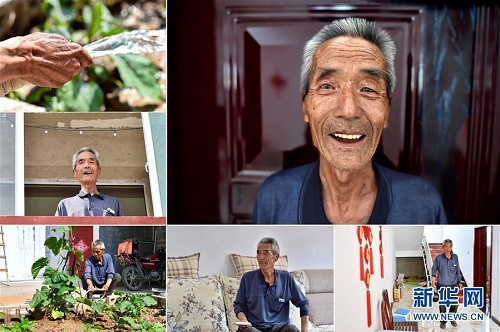 劉中秀,男,1949年出生,山西省長(zhǎng)治市潞城區(qū)西北村人,全家5口人靠種植玉米為生,收入微薄。2011年,劉中秀因一次意外而致殘,生活更加貧困。被列入建檔立卡貧困戶后,劉中秀在村干部的幫助下開起了農(nóng)家樂(lè),他的子女參與了貧困技能培訓(xùn)并順利就業(yè)。 右上:劉中秀肖像;左上:劉中秀在給植物澆水;左中:劉中秀站在新房的二樓看向窗外;左下:劉中秀在院子里給植物澆水;下中:劉中秀在新房里看電視;下右:劉中秀在新房里(拼版照片,6月12日攝)。 地處晉東南的山西省長(zhǎng)治市,位于由太行山、太岳山環(huán)繞而成的上黨盆地中。在群山中、崖壁上,許多村莊自然條件惡劣,基礎(chǔ)設(shè)施落后,脫貧致富是大山深處人們的迫切心愿。 近年來(lái),一場(chǎng)場(chǎng)脫貧攻堅(jiān)戰(zhàn),在一個(gè)個(gè)深山村打響。政府全力探索脫貧路徑的同時(shí),山區(qū)百姓因地制宜,靠自己的雙手和智慧走上致富路,交出了一份扎實(shí)的脫貧答卷。 記者在太行山、太岳山一路尋訪,記錄下多位70歲老人的生活。這些共和國(guó)的同齡人,親歷了山鄉(xiāng)的巨變,見證著長(zhǎng)治山區(qū)脫貧攻堅(jiān)偉大工程的一步步推進(jìn)。 新華社記者 曹陽(yáng) 攝