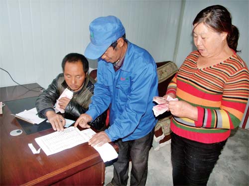 貧困戶領(lǐng)取土地流轉(zhuǎn)金