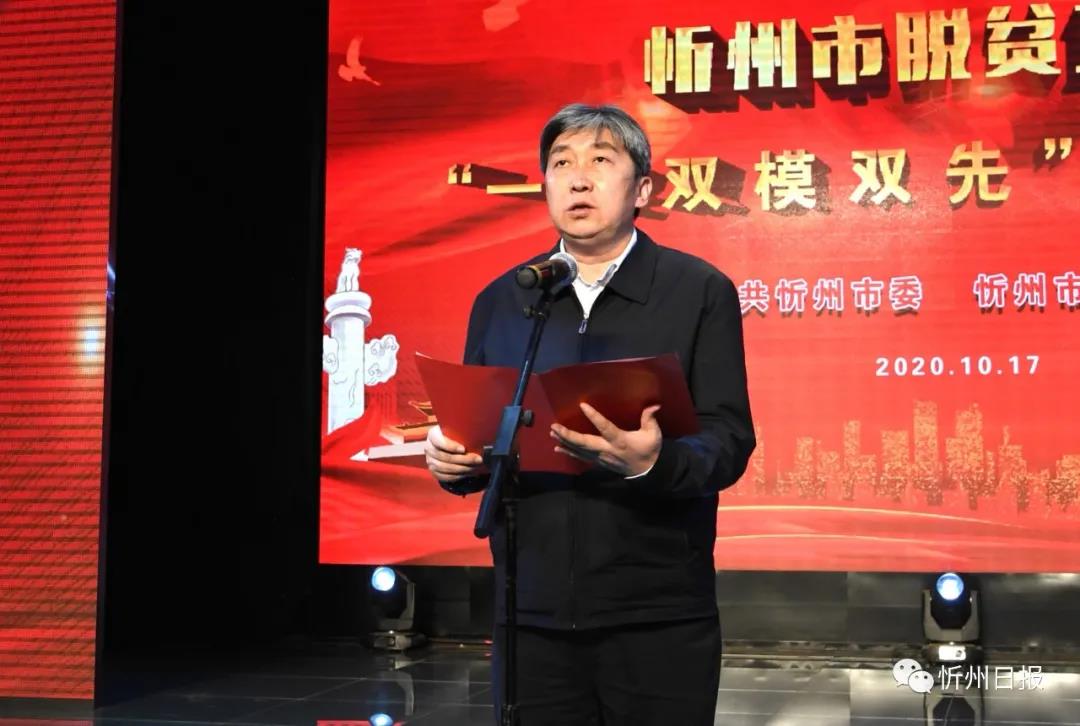 秦書義宣讀《中共忻州市委忻州市人民政府〈關(guān)于表彰2020年忻州市脫貧攻堅“一獎雙模雙先”的決定〉》。劉紀(jì)森