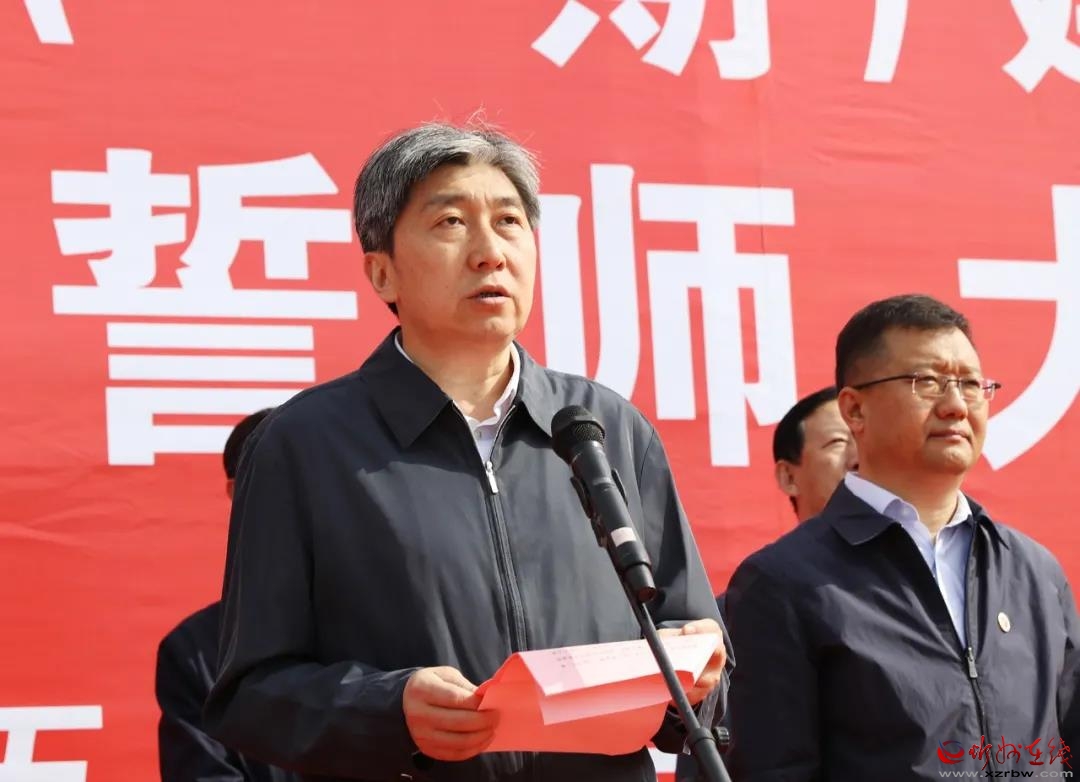 本報訊 (記者任逢春)5月11日,忻州師范學院新校區(qū)(一期)建設搬遷百日攻堅誓師大會舉行,進一步激勵全體參建人員凝心聚力,緊抓施工黃金期,大干100天,確保忻州師院新校區(qū)9月份前如期順利投入使用。市長朱曉東出席活動并提出工作要求。忻州師院黨委書記王軍致辭。市政府一級巡視員武憲堂主持誓師大會。忻州師院院長張虎芳,市政府副市長、秘書長郭寶厚等出席大會。市直相關部門負責人,山西建投、山西建工職工代表,忻州師院師生代表等參加大會。、