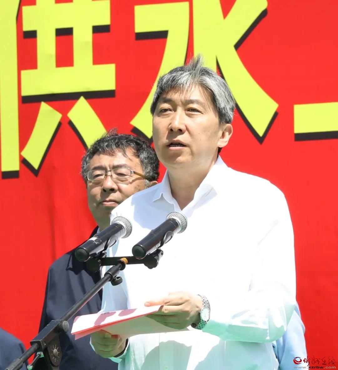 本報(bào)訊 (記者任逢春)6月1日,忻州市縣域小水網(wǎng)供水工程推進(jìn)會(huì)在西部7縣同步舉行,主會(huì)場設(shè)在五寨縣頤峰水庫壩址,分會(huì)場設(shè)在寧武、靜樂、神池、岢嵐、保德、偏關(guān)6縣水庫壩址。市委副書記、市長朱曉東出席主會(huì)場活動(dòng)并講話,宣布五寨縣頤峰水庫建設(shè)工程開工,與各界人士共同為水庫奠基。省水利廳一級(jí)巡視員張建中、萬家寨水務(wù)控股集團(tuán)有限公司總經(jīng)理樊安順等出席活動(dòng)并致辭。副市長耿鵬鵬主持推進(jìn)會(huì)。市縣域小水網(wǎng)供水工程領(lǐng)導(dǎo)組成員單位主要負(fù)責(zé)同志,項(xiàng)目施工、設(shè)計(jì)、勘察、監(jiān)理等單位代表參加活動(dòng)。
