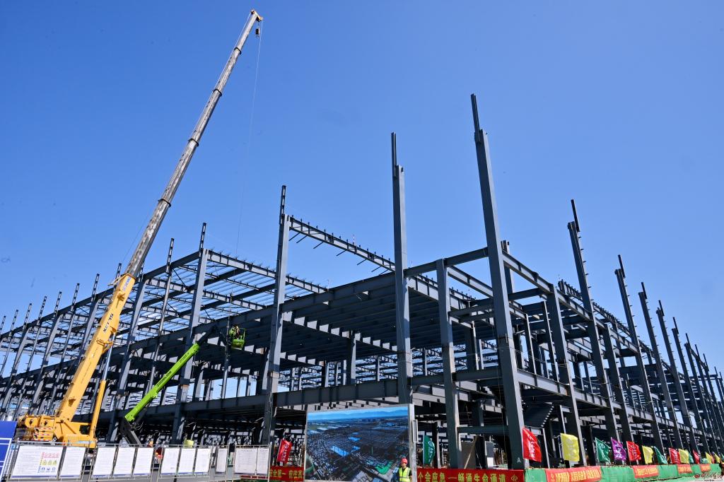 宏厚裝配式建筑科技產(chǎn)業(yè)園鋼結(jié)構(gòu)裝配式建筑生產(chǎn)線項目。馮曉磊 攝