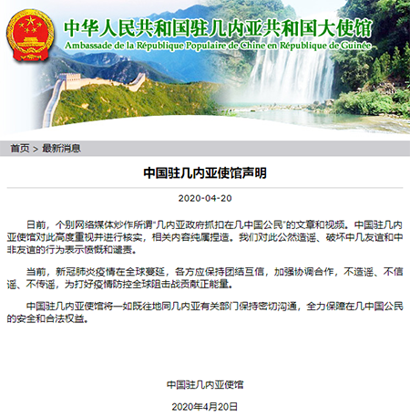 真相:4月20日,中國駐幾內(nèi)亞使館通過官方網(wǎng)站發(fā)布聲明表示,使館對此高度重視并進(jìn)行核實(shí),相關(guān)內(nèi)容純屬捏造。對此公然造謠、破壞中幾友誼和中非友誼的行為表示憤慨和譴責(zé)。