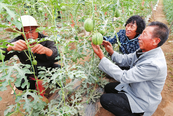 6月3日,在大同市新榮區(qū)堡子灣鄉(xiāng)得勝堡村吊瓜西瓜日光溫室內,農(nóng)民胡明、劉轉林正在對吊瓜西瓜進行維護。今年以來,得勝堡村因地制宜,建設日光溫室6棟,共計13560平方米,助推得勝堡村易地搬遷后續(xù)產(chǎn)業(yè)“高效種植園區(qū)+鄉(xiāng)村旅游”“大棚設施產(chǎn)業(yè)+鄉(xiāng)村旅游產(chǎn)業(yè)”等模式快速發(fā)展,走出了一條產(chǎn)業(yè)富民強村之路。(山西日報記者劉通 山西日報通訊員陳榮燁攝