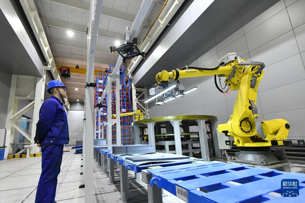 這是2023年10月11日拍攝的蔚來(lái)第二先進(jìn)制造基地內(nèi)景。新華社發(fā)