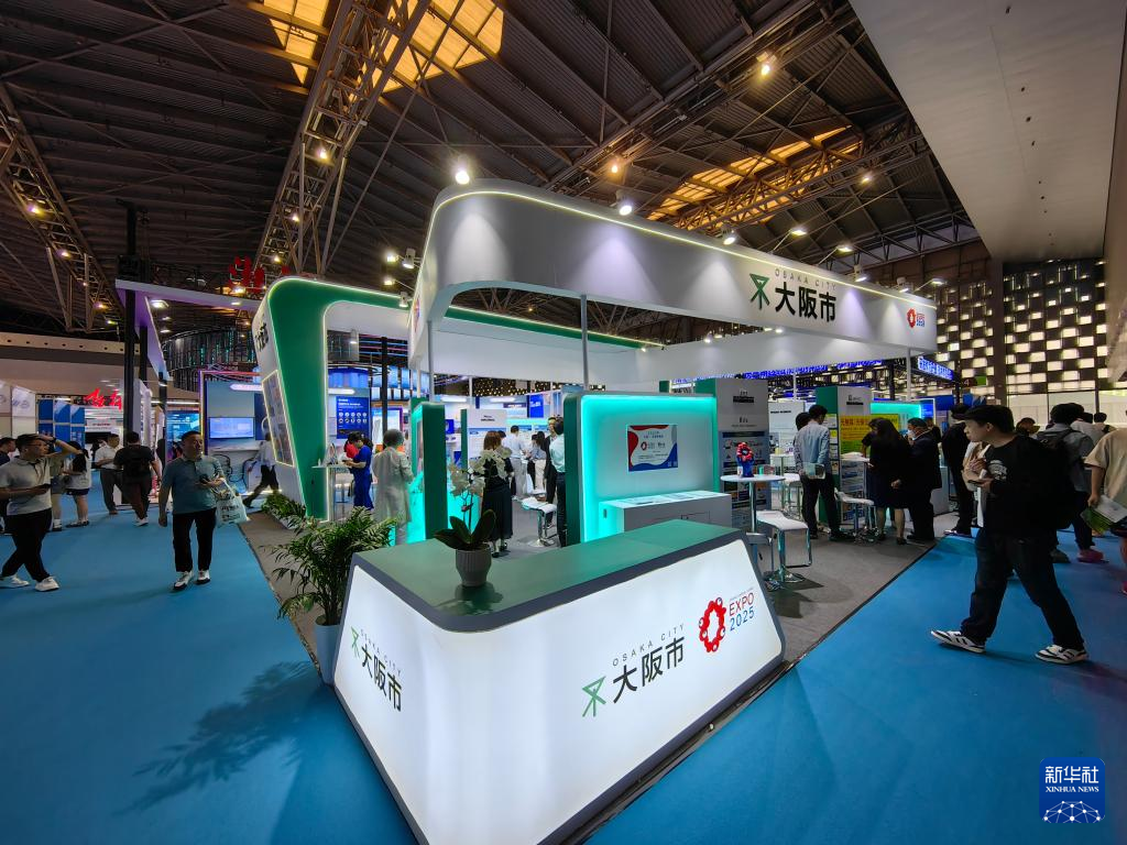 上交會(huì)上,觀眾正在參觀境外主賓城大阪帶來的技術(shù)。新華社記者周蕊 攝