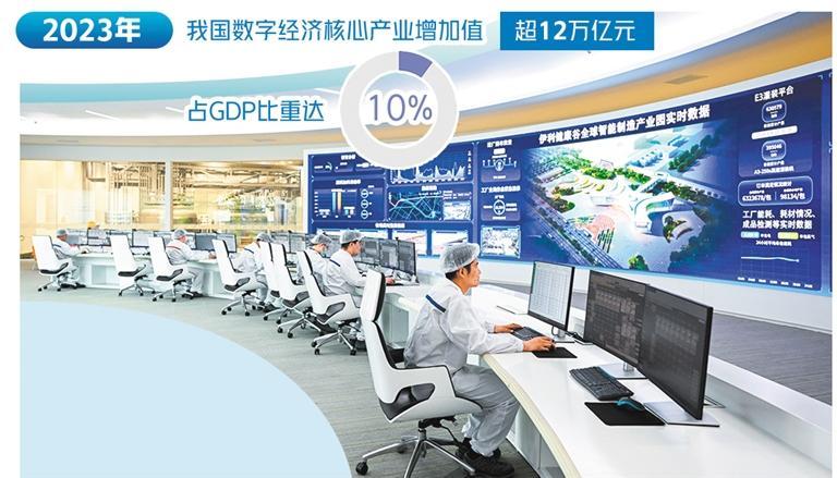 2023年,我國數(shù)字經(jīng)濟核心產(chǎn)業(yè)增加值超過12萬億元,占GDP比重達10%。今年前5個月,軟件業(yè)務(wù)收入超4.93萬億元,同比增長11.6%;信息技術(shù)服務(wù)收入3.33萬億元,同比增長12.9%?!拔覀冎С峙嘤艘慌|(zhì)量評價、資產(chǎn)評估、交易撮合等數(shù)據(jù)服務(wù)商,數(shù)字經(jīng)濟產(chǎn)業(yè)生態(tài)不斷豐富?!痹谌涨芭e辦的2024全球數(shù)字經(jīng)濟大會上,工業(yè)和信息化部副部長辛國斌說。