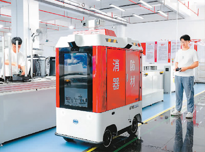 福建省福州市倉(cāng)山區(qū)大力發(fā)展以智能制造為主導(dǎo)的新一代信息技術(shù)產(chǎn)業(yè),通過(guò)人才引進(jìn)、科技創(chuàng)新、強(qiáng)化金融服務(wù)和落實(shí)財(cái)稅等惠企政策,積極打造數(shù)字經(jīng)濟(jì)核心產(chǎn)業(yè)集聚區(qū)。圖為技術(shù)人員在福建漢特云智能科技有限公司生產(chǎn)線上調(diào)試消防智能巡邏機(jī)器人。新華社記者 魏培全攝