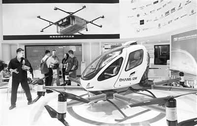 圖為在第十五屆中國(guó)國(guó)際航空航天博覽會(huì)上展示的無(wú)人駕駛載人航空器。 新華社記者 盧漢欣攝