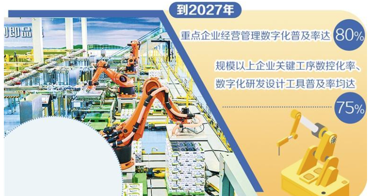 工業(yè)和信息化部等7部門日前印發(fā)《食品工業(yè)數(shù)字化轉(zhuǎn)型實(shí)施方案》(以下簡稱《實(shí)施方案》)提出,到2027年,重點(diǎn)企業(yè)經(jīng)營管理數(shù)字化普及率達(dá)80%,規(guī)模以上企業(yè)關(guān)鍵工序數(shù)控化率、數(shù)字化研發(fā)設(shè)計(jì)工具普及率均達(dá)到75%,打造百個(gè)數(shù)字化轉(zhuǎn)型典型應(yīng)用場景,梯次實(shí)施千個(gè)數(shù)字化示范(試點(diǎn))項(xiàng)目。