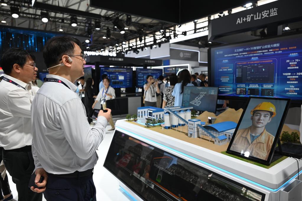 6月18日,觀眾在中國移動(dòng)展臺了解“AI+礦山安監(jiān)”技術(shù)方案。新華社記者 陳愛平 攝