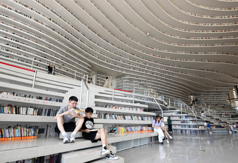 圖為市民在天津?yàn)I海新區(qū)圖書(shū)館內(nèi)閱讀。新華社記者 趙子碩 攝