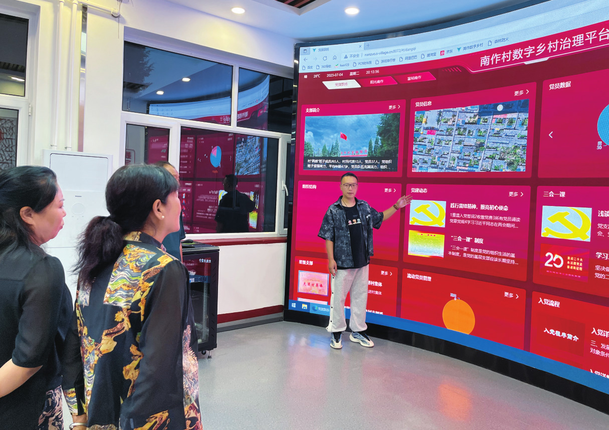 卜江濤向村民介紹數(shù)字鄉(xiāng)村治理平臺(tái)