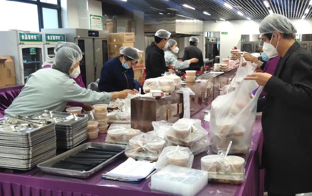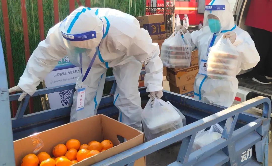 市級方艙醫(yī)院啟用以來,作為抗疫主力軍的護航者,后勤是這場疫情保衛(wèi)戰(zhàn)的關(guān)鍵一環(huán)。為做好方艙醫(yī)院運行后的餐飲、生活用品及工作人員的住宿等后勤保障服務(wù)工作,忻州市級方艙醫(yī)院后勤保障工作組夜以繼日,辛苦奉獻,始終和醫(yī)療團隊從黑夜到黎明奮戰(zhàn)在一線。18日中午12點,記者來到忻州市方艙醫(yī)院大門口看到,方艙內(nèi)外保障組工作人員正在交接餐食,一包包盒飯、水果從餐車拿出來放到三輪車上,然后由艙內(nèi)后勤保障組工作人員送到方艙內(nèi)醫(yī)護人員的手中。
