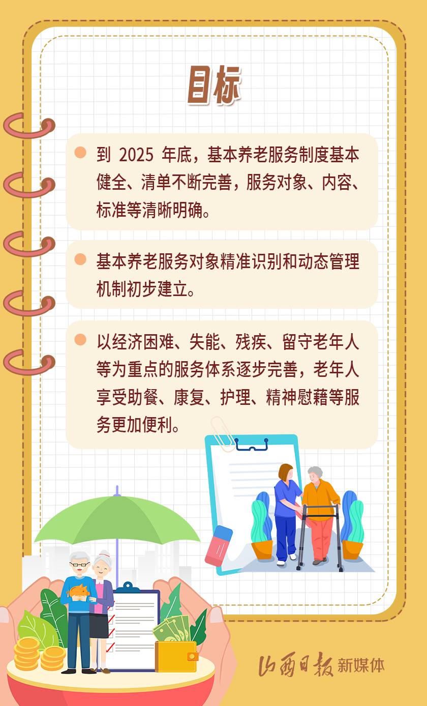 近日,我省出臺《山西省基本養(yǎng)老服務(wù)體系建設(shè)實施方案》,以積極應(yīng)對全省人口老齡化,扎實推進基本養(yǎng)老服務(wù)體系建設(shè),切實提高基本養(yǎng)老服務(wù)的公平性、可及性,不斷增強老年人的獲得感、幸福感、安全感。