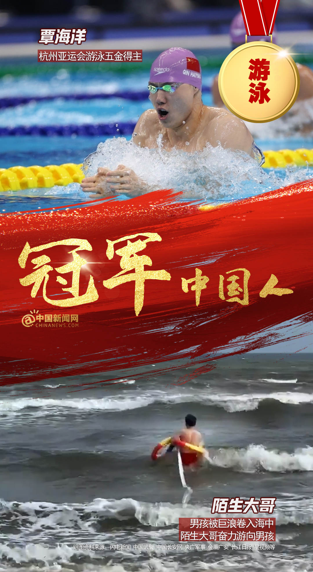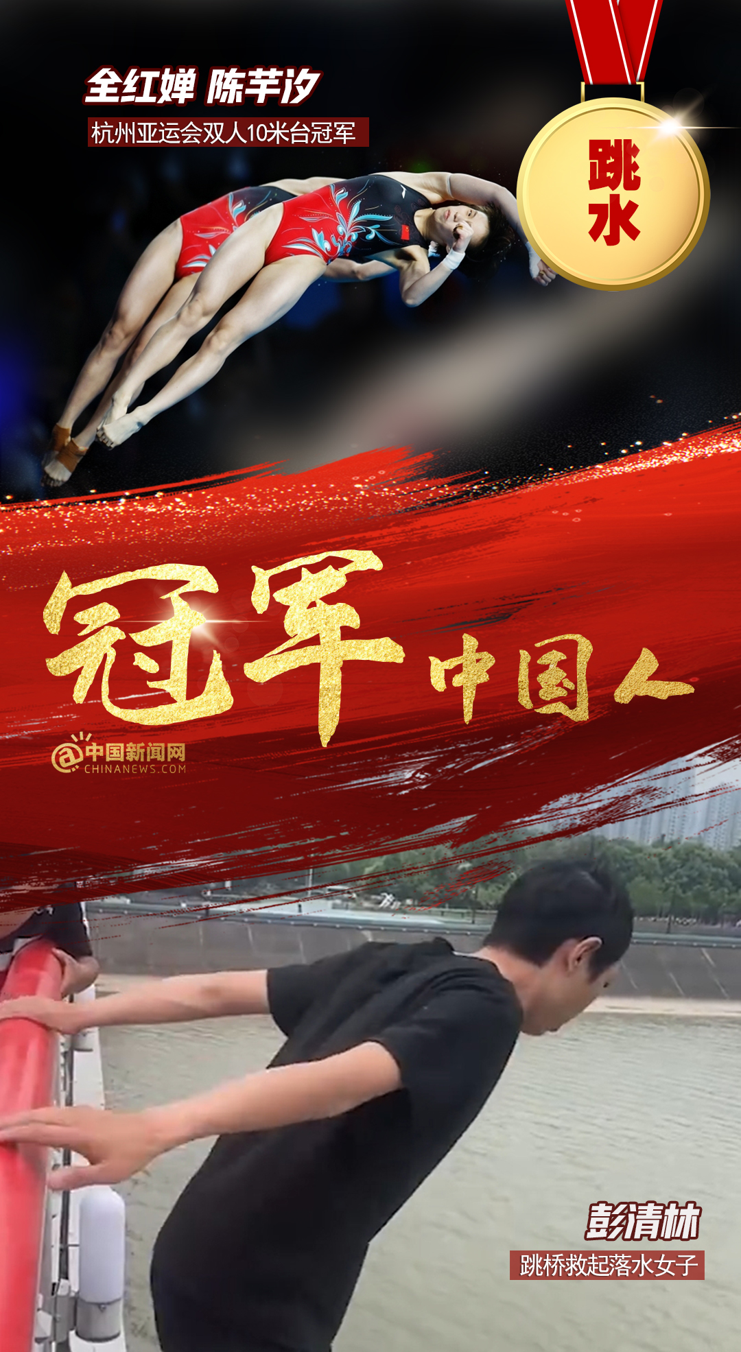 中新網(wǎng)12月15日電 全紅嬋、陳芋汐亞運雙人10米臺奪金,彭清林跳十幾米大橋救人;中國男子4×100亞運逆轉(zhuǎn)取勝,仙居人民醫(yī)院醫(yī)護接力搶救老人…賽場上,人生中,他們都是我們心中的冠軍!2023,冠軍屬于每個奮力拼搏獲得成績,默默付出與人為善,激勵、幫助、照亮他人的中國人!