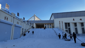 拖拉機拉著雪圈起舞旋轉(zhuǎn)