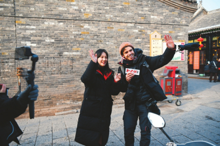 龍祥鳳瑞迎新春、龍躍鳳舞鬧新春、龍章鳳彩賀新春,熱鬧的平遙中國年吸引不少外國友人來打卡,吃美食、看文化、當(dāng)回“晉商少奶奶”?!捌竭b古城歷史悠久,是曾經(jīng)的‘中國華爾街’,在全世界都非常著名,晉商票號讓人感到震撼。”臘月廿七中午,剛剛結(jié)束山西大同行程的葡萄牙游客Joao與哥哥來到平遙古城。Joao是一位中國歷史愛好者,談起腳下的平遙古城連連豎起大拇指,“我們特意把平遙的旅程放在春節(jié)這段時間,要轉(zhuǎn)轉(zhuǎn)古城的歷史遺跡,還要看看古城的特色演出,感受一番地道的中國年?!?/p>