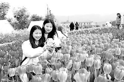 重慶市永川區(qū)十里荷香景區(qū)的郁金香競(jìng)相綻放,吸引游客打卡。陳仕川攝/光明圖片