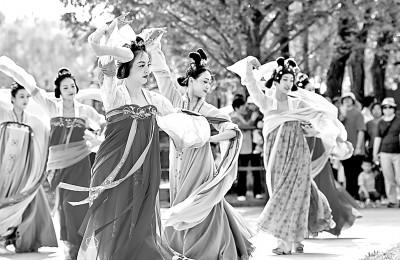 在陜西省西安市大唐芙蓉園,演員向游客呈現(xiàn)春日主題特色演出。新華社發(fā)