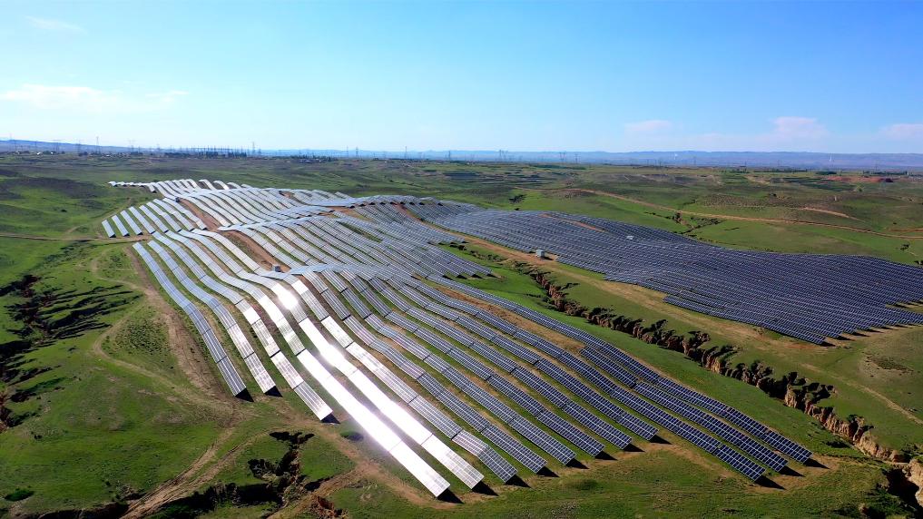 通渭縣10萬(wàn)千瓦集中式光伏發(fā)電項(xiàng)目。新華社記者 張睿 攝