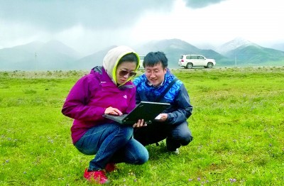 徐娜和同事在野外收集氣象數(shù)據(jù)。 受訪(fǎng)者供圖