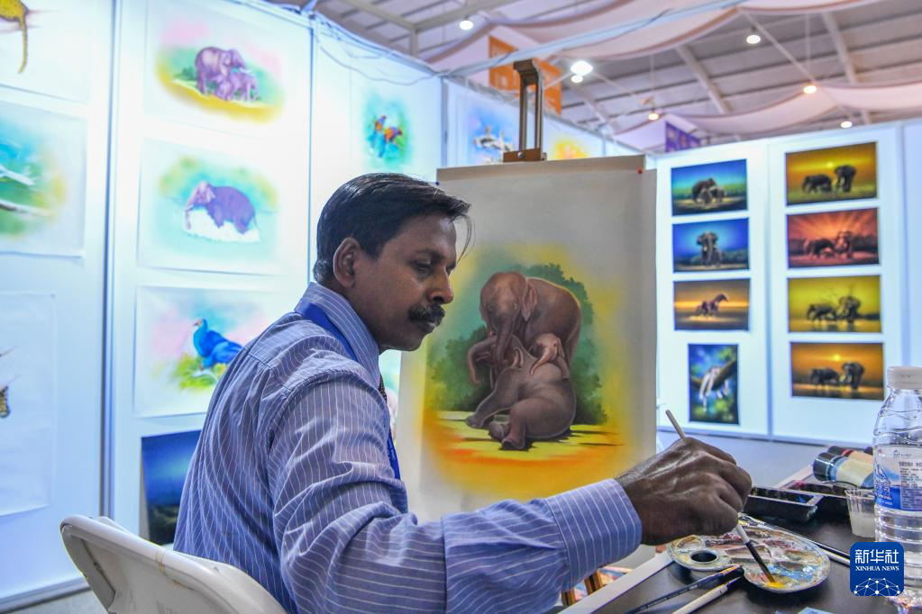 7月26日,斯里蘭卡參展商在南亞館現(xiàn)場(chǎng)作畫。