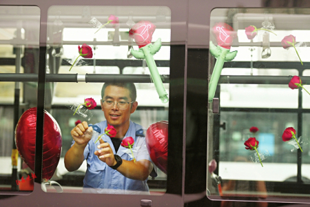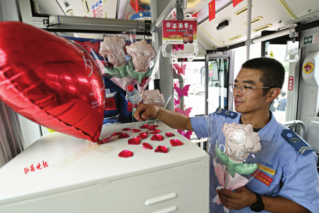 七夕節(jié)即將到來,8月8日,在太原公交第三汽車分公司,公交車廂里上演了一場別樣的浪漫——堅(jiān)守在一線的兩名公交司機(jī)閻樹德和焦更新,分別為出車回來的妻子準(zhǔn)備了大大的驚喜。用送花、提前準(zhǔn)備飯菜、布置車廂等行動表達(dá)自己的愛意。