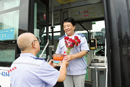今年53歲的閻樹德和49歲的妻子王小娟,同為863路公交車駕駛員,他們夫妻走過了23年,這么多年相互理解、相互扶持,是同事眼中的模范夫妻。王小娟今年12月就要退休了,閻樹德給妻子準(zhǔn)備了餃子,炒了兩個(gè)菜,還買了鮮花。他希望這種簡單的方式,讓辛苦多年的妻子在退休前度過一個(gè)值得回憶的七夕節(jié)。王小娟看著老實(shí)本分的老公送給自己的禮物,開心地說:“我們相濡以沫這么多年,又搭檔駕駛同一輛公交車,早把這輛車當(dāng)成了第二個(gè)家?!狈蚱迋z這么多年默契配合,保持著零事故、零投訴的紀(jì)錄,他們相互照顧,用心用情服務(wù)著每一位乘客。