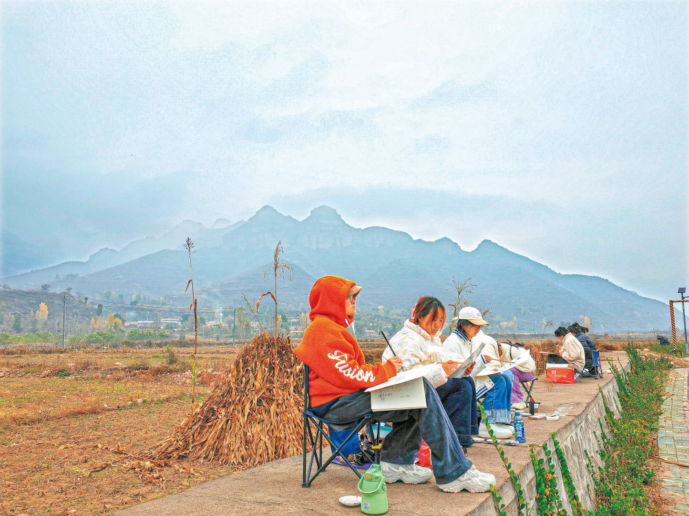 雖然已時(shí)近立冬,但來(lái)自晉中學(xué)院的一百多名師生仍堅(jiān)持每天外出寫(xiě)生?!斑@里是太行山中段最雄美的地方,來(lái)到這里可以讓學(xué)生們接受大自然的洗禮,同時(shí)感受地方文化,讓他們積累創(chuàng)作素材的同時(shí)了解農(nóng)村、熱愛(ài)農(nóng)村?!睍x中學(xué)院國(guó)畫(huà)老師孟冠華說(shuō)。
