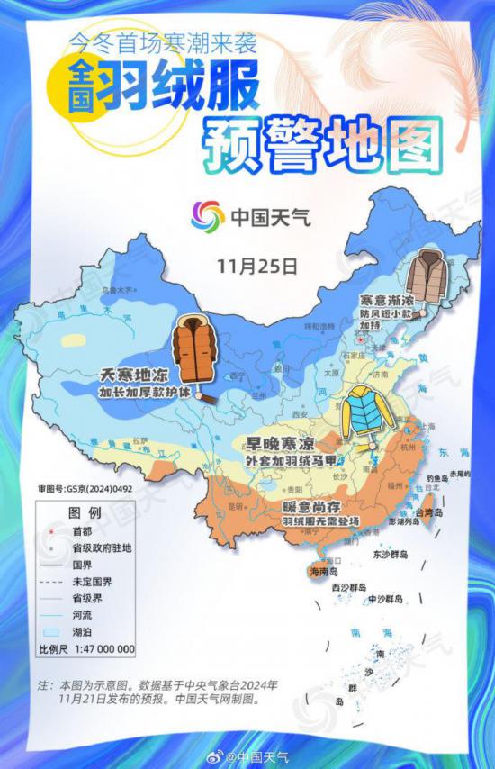從南到北都要穿:全國(guó)羽絨服預(yù)警地圖出爐
