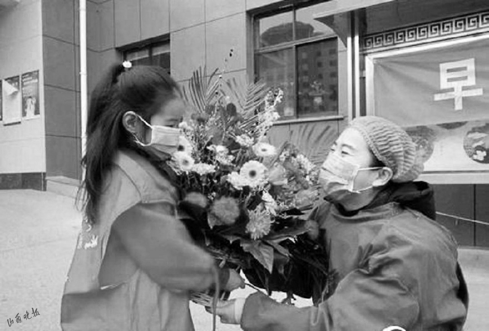 帶著6歲女兒曹夢惠上陣的曹東平和帶著兒子一起配送的長治正能量公益協(xié)會會長羅春江格外惹眼?!吧详嚫缸颖保半m然不在前線,但希望通過這樣一種方式助力疫情防控阻擊戰(zhàn)早日打贏?!绷_春江說。