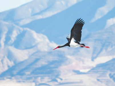 每年開(kāi)春,總會(huì)有不少省內(nèi)外游客慕名來(lái)到靈丘縣,來(lái)目睹世界瀕危珍禽、國(guó)家一級(jí)保護(hù)動(dòng)物黑鸛的風(fēng)采。步履輕盈潛行捕食、由低向高展翅盤(pán)旋,白腹黑衣、紅嘴赤腳的黑鸛與藍(lán)天白云相映成趣,成為峭壁與綠水間的一道亮麗景觀。