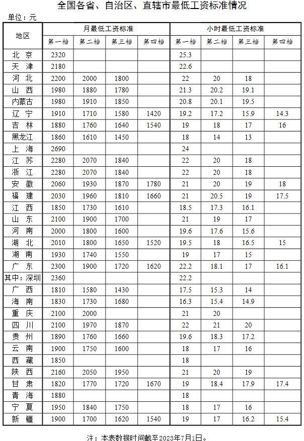 此次是人社部年內(nèi)第三次公布各地最低工資標準情況,此前曾公布截至2023年1月1日、2023年4月1日的最低工資標準。