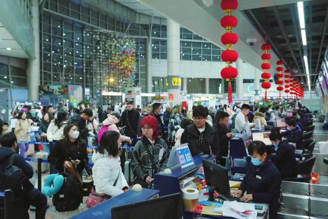 太原機(jī)場候車大廳內(nèi),人流如織,工作人員有條不紊地幫旅客辦理乘機(jī)手續(xù),保障她們準(zhǔn)點(diǎn)登機(jī)、早日回家。