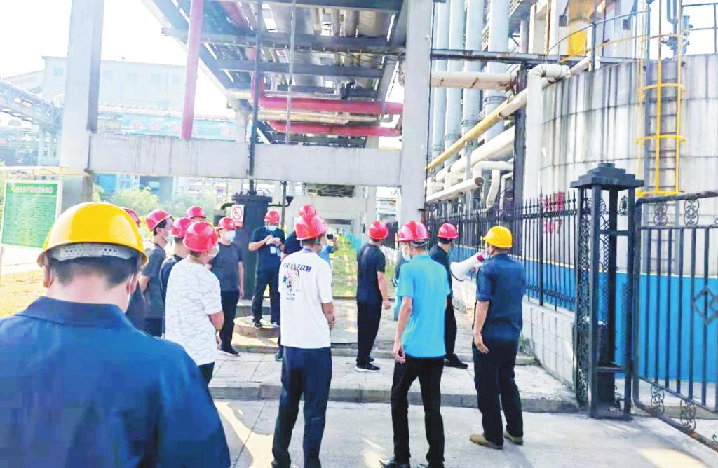 參賽人員深入企業(yè)生產(chǎn)車間,從生產(chǎn)工藝源頭開始,逐一對照講解內(nèi)容,聽取了企業(yè)環(huán)保管理人員對企業(yè)生產(chǎn)工藝流程、污染防治設施運行等的講解。