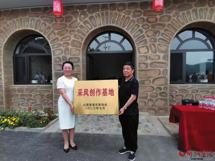省音協(xié)常務副主席白云,原平市委常委、宣傳部部長張志男為采風創(chuàng)作基地愛木圖景區(qū)授牌。