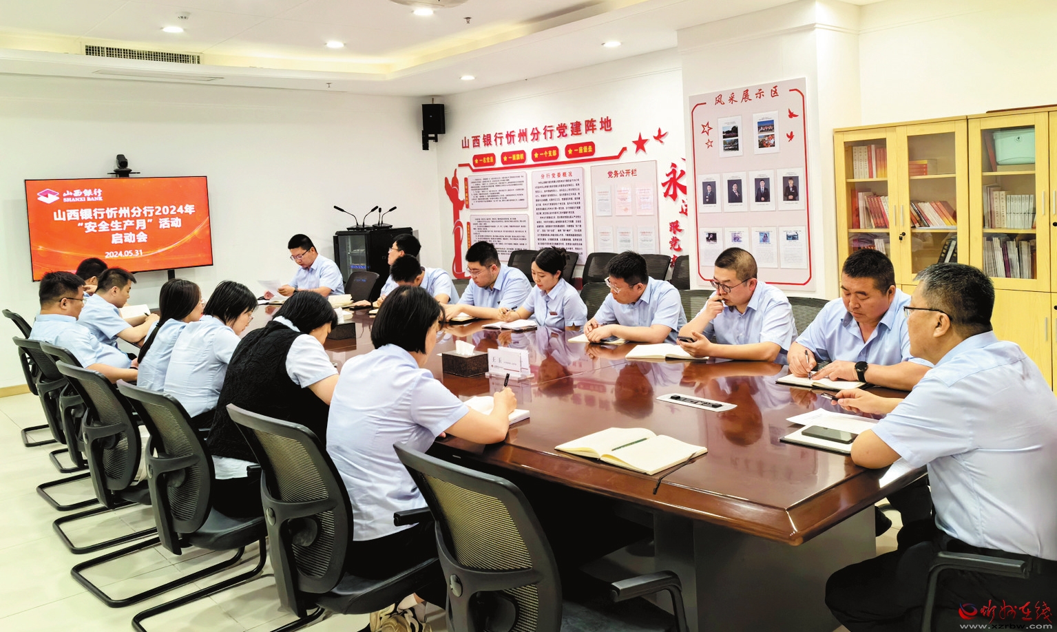 今年6月是第23個(gè)全國(guó)“安全生產(chǎn)月”,主題是“人人講安全、個(gè)個(gè)會(huì)應(yīng)急——暢通生命通道”。為認(rèn)真貫徹落實(shí)上級(jí)部門安全生產(chǎn)工作部署要求,5月31日,山西銀行忻州分行召開(kāi)“安全生產(chǎn)月”活動(dòng)啟動(dòng)會(huì),要求各責(zé)任主體全面壓實(shí)安全責(zé)任,深入開(kāi)展安全宣傳,堅(jiān)決守牢安全生產(chǎn)底線。啟動(dòng)會(huì)后,全體參會(huì)人員集中觀看了《安全生產(chǎn) 責(zé)任在肩》警示教育片。(秦浩東攝)
