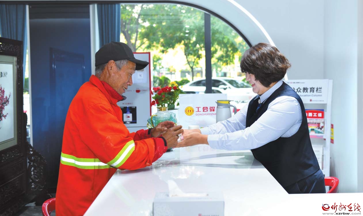工行忻州汾源支行的“工會(huì)驛站”特別關(guān)注戶外勞動(dòng)者的需求,在驛站內(nèi)設(shè)立了休息區(qū),并增設(shè)了老花鏡、急救藥箱、手機(jī)充電、免費(fèi)飲用水、雨傘等設(shè)施,從細(xì)節(jié)做起,給予戶外勞動(dòng)者提供夏可納涼、冬可取暖、累可歇腳、遮風(fēng)避雨的溫馨服務(wù)。環(huán)衛(wèi)工李師傅對“工會(huì)驛站”的體驗(yàn)贊不絕口,他說:“工會(huì)驛站真的是太有愛了,渴了進(jìn)來喝口水,累了進(jìn)來歇歇腳,汾源支行的服務(wù)真的很貼心?!?/p>
