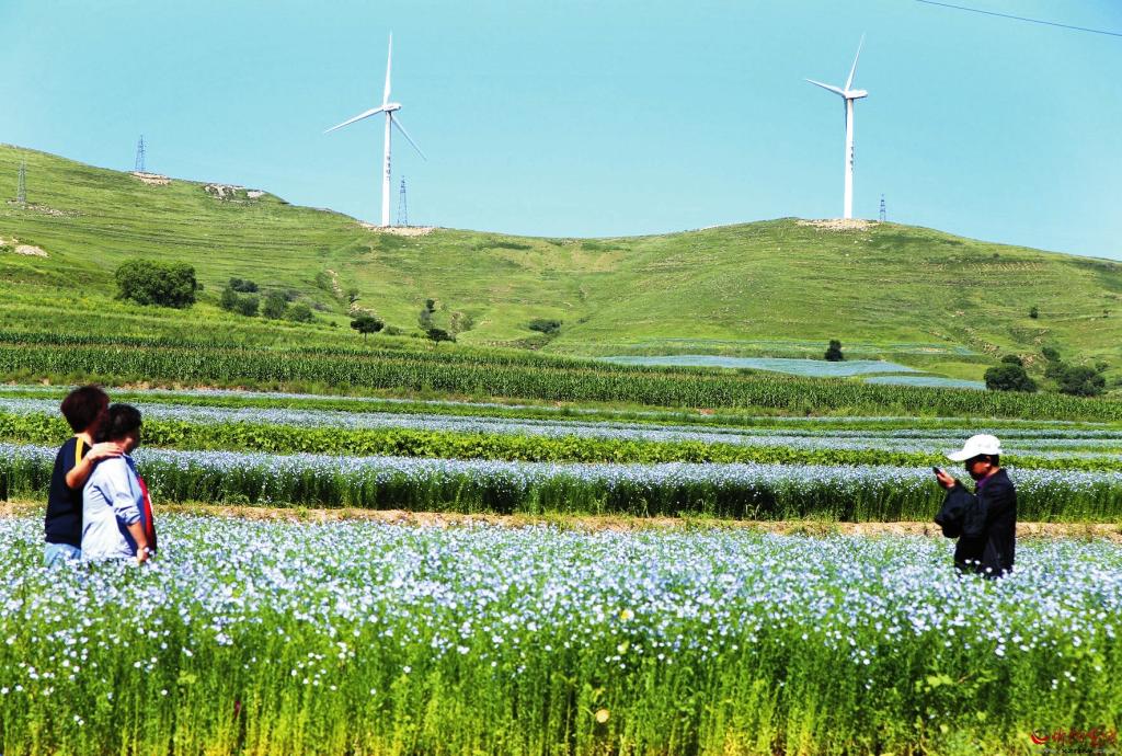 近年來(lái),神池縣加大對(duì)胡麻種植戶的補(bǔ)貼力度,每畝補(bǔ)貼260元,在胡麻品質(zhì)最優(yōu)的烈堡鄉(xiāng)種植1.6萬(wàn)畝,打造了970畝有機(jī)旱作胡麻種植示范基地。每年6月下旬至7月下旬,烈堡鄉(xiāng)解家?guī)X到長(zhǎng)城寨沿線的胡麻花盛開(kāi),藍(lán)色花海與沿線的長(zhǎng)城交相輝映,組成一幅動(dòng)人的美景畫(huà)。烈堡鄉(xiāng)鄉(xiāng)長(zhǎng)趙崢嶸介紹,當(dāng)?shù)卣谔剿鳜F(xiàn)代農(nóng)業(yè)發(fā)展新路徑,通過(guò)“胡麻產(chǎn)業(yè)+旅游”的方式,吸引更多游客,使胡麻成為帶動(dòng)鄉(xiāng)村振興的重要引擎。