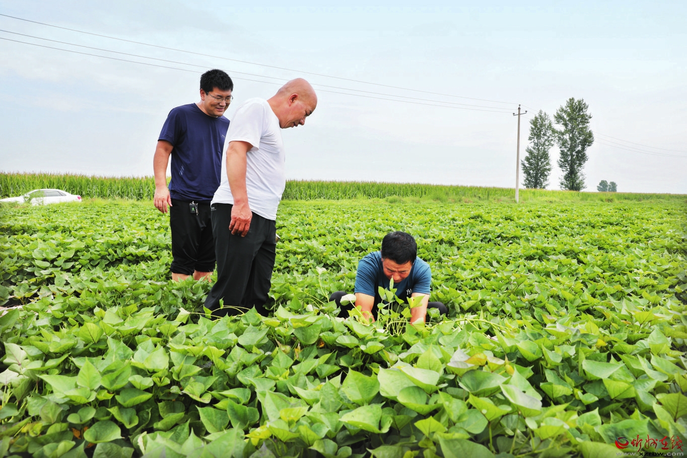 頭戴一頂舊草帽、一雙鞋上沾滿了泥。7月28日,山西農(nóng)業(yè)大學(xué)玉米研究所研究員張紅梅頂烈日、冒酷暑,蹲在忻府區(qū)董村鎮(zhèn)劉家山村種薯生產(chǎn)基地,觀察紅薯葉片,判斷種薯生長情況。