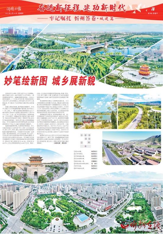 初秋的忻州,綠樹、花草與藍(lán)天白云交相輝映,漫步在城區(qū)大街上,城市美景讓人心曠神怡:一條條道路寬闊平坦,一幢幢高樓拔地而起,一處處公園生機(jī)盎然……十年來,忻州市委、市政府堅持以人民為中心的發(fā)展理念,改革創(chuàng)新、擔(dān)當(dāng)作為、砥礪奮進(jìn),有力推動了住房和城鄉(xiāng)建設(shè)事業(yè)高質(zhì)量發(fā)展。