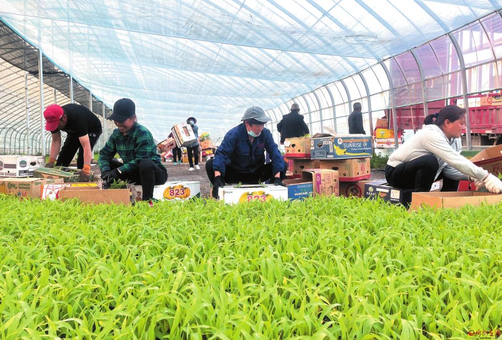 忻府區(qū)高城村玉米育苗大棚內(nèi),工人們正在將培育好的種苗打包裝箱,種苗隨即被運往玉米兄弟公司種植基地進行移栽。 本報記者 司麗瓊攝
