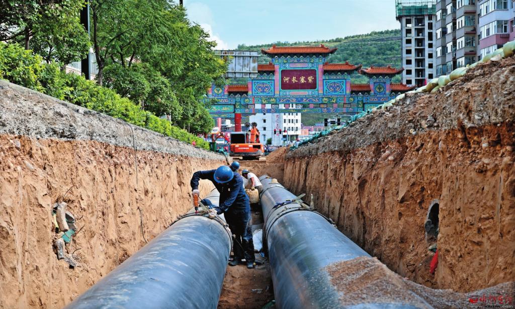 縣城主干道管網(wǎng)鋪設施工現(xiàn)場。 本報記者張存良攝