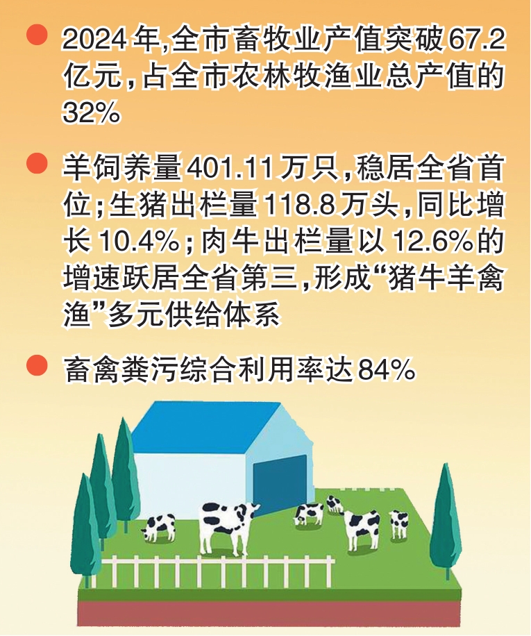 2024年,我市畜牧業(yè)產(chǎn)值突破67.2億元,占全市農(nóng)林牧漁業(yè)總產(chǎn)值的32%;羊飼養(yǎng)量以401.11萬只的規(guī)模穩(wěn)居山西省首位;畜禽糞污綜合利用率達(dá)84%……一組組數(shù)據(jù)背后,正是這座北方畜牧強(qiáng)市以“穩(wěn)產(chǎn)保供”筑牢產(chǎn)業(yè)基底、以“全鏈升級”助力鄉(xiāng)村振興的生動實(shí)踐。 保供與增收:畜牧產(chǎn)業(yè)的“雙重使命” 在岢嵐縣萬只羊生態(tài)養(yǎng)殖示范基地,標(biāo)準(zhǔn)化羊舍依山而建,自動飼喂系統(tǒng)精準(zhǔn)投料,工人們將打包好的有機(jī)肥裝車發(fā)往周邊農(nóng)田?!盎啬戤a(chǎn)肉羊2萬只,帶動多個村集體經(jīng)濟(jì)年增收超80萬元?!被丶夹g(shù)負(fù)責(zé)人介紹。 2024年,我市畜牧產(chǎn)業(yè)多元供給格局成型,全市生豬出欄量118.8萬頭,同比增長10.4%;肉牛出欄量以12.6%的增速躍居全省第三;家禽、水產(chǎn)品產(chǎn)量分別達(dá)677.37萬只、2765噸,形成“豬牛羊禽漁”多元供給體系??萍假x能降本增效,繁峙縣恒晟養(yǎng)殖場引進(jìn)全自動化雞舍,養(yǎng)殖效率提升40%;靜樂縣4個村集體采用標(biāo)準(zhǔn)化鵝舍,6.3萬羽肉鵝存活率達(dá)89%,戶均增收1.5萬元左右。政策紓困激發(fā)活力,通過設(shè)施農(nóng)業(yè)貸款貼息、奶業(yè)新型主體培育等項(xiàng)目,累計(jì)發(fā)放補(bǔ)貼421萬元,惠及18個新改擴(kuò)建畜禽規(guī)模養(yǎng)殖場。 生態(tài)與循環(huán):綠色養(yǎng)殖的“忻州解法” 原平市唐林崗村的千畝稻田里,魚蟹游動攪起層層漣漪?!暗緷O綜合種養(yǎng)模式讓畝均收益增加800元,化肥使用量減少三成?!狈N養(yǎng)大戶王建軍算著“生態(tài)賬”。這種“一地雙收”的實(shí)踐,是忻州畜牧業(yè)綠色發(fā)展路徑的生動體現(xiàn)。 糞污變資源,全市目前建成9家有機(jī)肥生產(chǎn)企業(yè),年轉(zhuǎn)化畜禽糞污150萬噸;規(guī)模養(yǎng)殖場糞污處理設(shè)施配套率達(dá)98%,相當(dāng)于每年減少使用12萬噸化肥。技術(shù)破難題,推廣陸基圓池(桶)循環(huán)水養(yǎng)殖技術(shù),3000平方米標(biāo)準(zhǔn)化魚塘實(shí)現(xiàn)尾水零排放;寧武縣“見犢補(bǔ)母”項(xiàng)目促進(jìn)草畜平衡,減少過度放牧5.8萬畝。寧武縣東寨鎮(zhèn)養(yǎng)殖戶李三保說:“以前總覺得多養(yǎng)才能賺,現(xiàn)在明白‘精養(yǎng)’更劃算。草好了,牛就少生病,去年獸藥支出少了5000多元?!鄙鷳B(tài)鏈延伸,河曲縣奶牛場將糞肥用于飼草種植,形成“?!省荨遍]環(huán);五寨縣發(fā)展林下養(yǎng)鵝,89%的存活率開辟出生態(tài)養(yǎng)殖新賽道。 防控與安全:筑牢疫病“防火墻” 在繁峙牧原三場,智能監(jiān)控系統(tǒng)實(shí)時分析著豬群健康數(shù)據(jù),AI識別技術(shù)可在15秒內(nèi)鎖定異常個體?!斑@里每批出欄生豬都經(jīng)過42道檢測,直供粵港澳市場?!眻鲩L介紹。忻州構(gòu)建的疫病防控體系,成為產(chǎn)業(yè)安全的關(guān)鍵支撐。 免疫屏障全覆蓋,全市重大動物疫病群體免疫密度保持在90%以上,布病免疫牛群抗體轉(zhuǎn)陽率超80%;“先打后補(bǔ)”政策覆蓋91個養(yǎng)殖場,補(bǔ)助資金同比增長23%。智慧監(jiān)管無死角,通過“牧運(yùn)通”“智慧獸醫(yī)”平臺,實(shí)現(xiàn)14.9萬頭生豬、169萬只羊全程可追溯;371名官方獸醫(yī)完成年度培訓(xùn),檢疫檢測合格率達(dá)100%。無害處理保底線,4個專業(yè)無害化處理廠年處理病死畜禽50萬頭,配套建成冷凍暫存庫、運(yùn)輸專線,2024年處理病死豬24.7萬頭,補(bǔ)助資金全部到位。 聚合與升級:全產(chǎn)業(yè)鏈的“突圍戰(zhàn)” 從岢嵐山坡的絨山羊到定襄縣的冷鏈物流車,忻州畜牧產(chǎn)業(yè)正打破“養(yǎng)殖——銷售”單一模式,向全鏈條要效益。前端強(qiáng)種業(yè),建設(shè)晉嵐絨山羊、晉神肉羊等3個省級種畜禽場,全市畜禽良種化率達(dá)85%;實(shí)施肉牛凍配改良6689頭,引進(jìn)良種豬2000頭,建成大口黑鱸良種繁育基地;與中國農(nóng)大合作攻關(guān)肉羊同期發(fā)情技術(shù),將繁殖率提升30%。中端提標(biāo)準(zhǔn),推動新大象等龍頭企業(yè)建設(shè)屠宰加工中心,生豬屠宰檢疫率、落地監(jiān)管率均達(dá)100%;忻府區(qū)在12家智慧養(yǎng)殖試點(diǎn)場環(huán)境控制、精準(zhǔn)飼喂等關(guān)鍵環(huán)節(jié)機(jī)械化率達(dá)到75%,全區(qū)制定肉鵝、稻漁種養(yǎng)等12項(xiàng)地方標(biāo)準(zhǔn),綠色有機(jī)認(rèn)證畜產(chǎn)品產(chǎn)量占比達(dá)18%。后端拓市場,“忻州羔羊肉”2024年京東渠道銷售額達(dá)8246萬元;繁峙牛肉通過北上廣推介會新增港澳訂單,全年供港澳1875噸;神池縣雁門肉羊集群接待研學(xué)游客2.17萬人次,帶動綜合收入187萬元。 當(dāng)前,隨著1420畝稻蟹種養(yǎng)項(xiàng)目啟動、50萬噸有機(jī)肥產(chǎn)能釋放,以及支持農(nóng)業(yè)產(chǎn)業(yè)高質(zhì)量發(fā)展政策的深入實(shí)施,忻州畜牧產(chǎn)業(yè)正朝著既定目標(biāo)穩(wěn)步邁進(jìn)。這場從傳統(tǒng)養(yǎng)殖向現(xiàn)代化全產(chǎn)業(yè)鏈的突圍,為資源型地區(qū)鄉(xiāng)村振興提供了鮮活樣本。(記者 劉鑫林) (責(zé)任編輯:盧相?。?/span> |