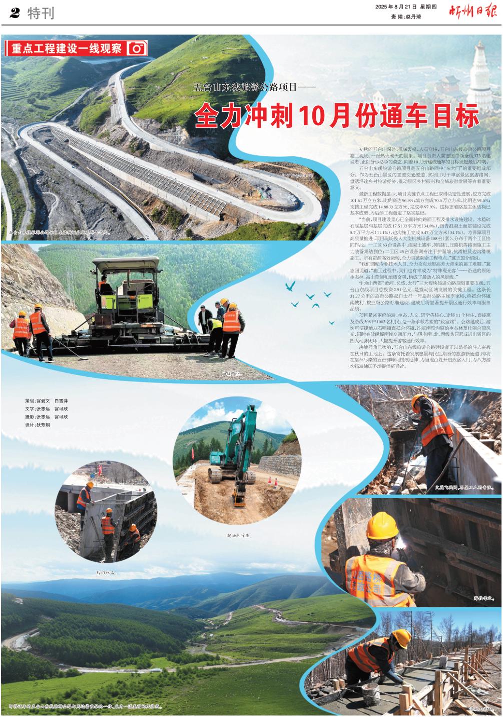 決戰(zhàn)號(hào)角已吹響,五臺(tái)山東線旅游公路建設(shè)者正以昂揚(yáng)的斗志奮戰(zhàn)在秋日的工地上。這條寄托著發(fā)展愿景與民生期盼的旅游新通道,即將在層林盡染的五臺(tái)群峰間鋪展延伸,為當(dāng)?shù)匕傩臻_啟致富大門,為八方游客暢游佛國(guó)圣境提供新通途。